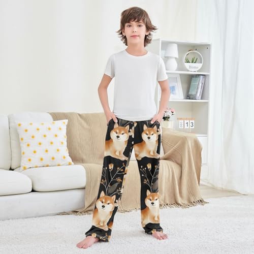 More information about Lovely Corgi Dog Floral Boys Long Pants tender Trousers Elastic Waist Kids Lounge Bottoms with Pockets S-XL