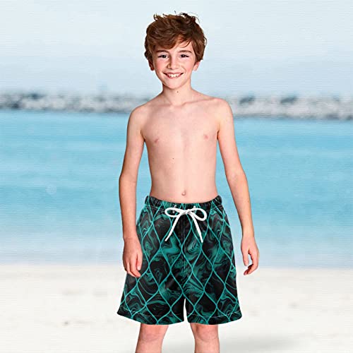 susiyo Teal and Black Textures Boys Swim Trunks Teens speedy Dry Beach Board Shorts Swimsuit