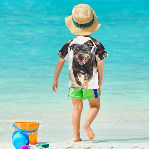 Boys Short Sleeve T-Shirts Dog White Watercolor Rashguard Kids Swim Shirts Sun UPF 50+