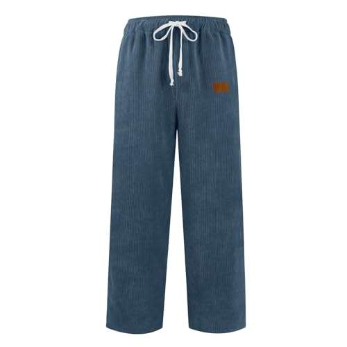 Corduroy Pants Men Slim Fit Baggy Big and Tall Straight Leg Casual Sweatpants Relaxed Fit Elastic Waist Drawstring Trousers