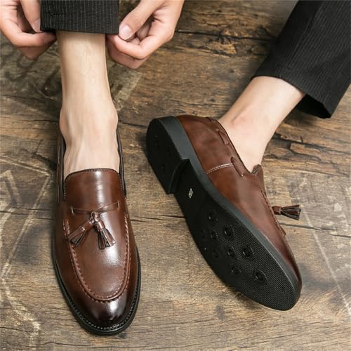 Men's Genuine Leather Slip-On Tassels Loafers Round Toe Non-Slip Lightweight Breathable Casual Dress Shoes for Business Driving Weekend Party Wedding Work