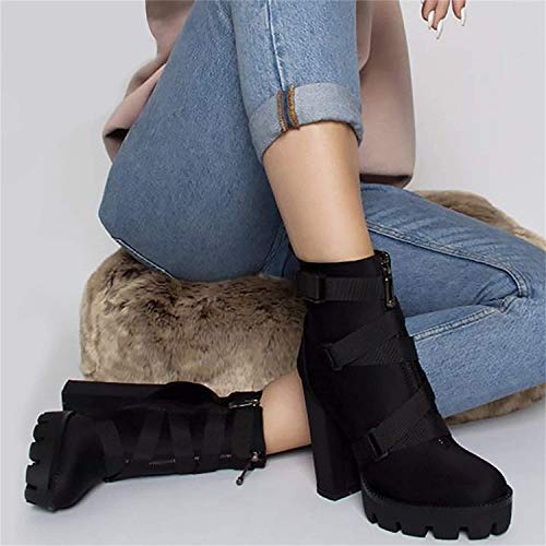 More information about DETOGNI Women's Fashion Platform Block High Heel Booties Buckle Strap Zipper Ankle Boots