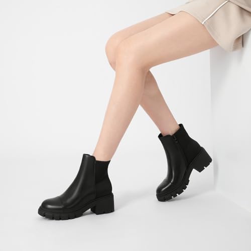 Athlefit Women's Ankle Boots Platform Lug Sole Chunky Heel Chelsea Booties with Side Zipper