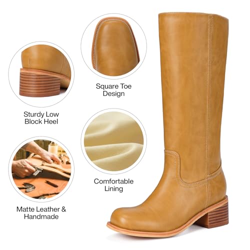 Origin: ImportedSole material: RubberShaft height: Calf HighShaft circumference: 14.1 InchesComfortable Design:Our mid calf boots Featuring a square toe and chunky block heel design that effectively reduces fatigue during long hours of walking or standing, combined with a calf cut that fits various leg shapes for all-day comfort.Durable & Easy Care:These women's mid calf boots are expertly handcrafted with premium synthetic leather, The abrasion-resistant material are easy to clean and maintain, staying as fresh as new with simple care and built to last.Zipper-Free Design:Featuring a zipper-free pull on design, these chunky mid calf boots for women ensure quick and effortless wear, saving you time while maintaining a modern look.Dress Tips & Occasion:Pair these square toe mid-calf boots with jeans, dresses, skirts, or shorts for effortless style. Perfect for casual outings, shopping, dates, parties, travel, weddings, or a stylish walk around town!Not for Wide Feet:These low heel boots run a bit narrow, if you have wider feet, we recommend ordering half a size up. For any inquiries, please contact us. Perfect for everyday use. supreme materials and excellent craftsmanship ensure long-lasting durability.