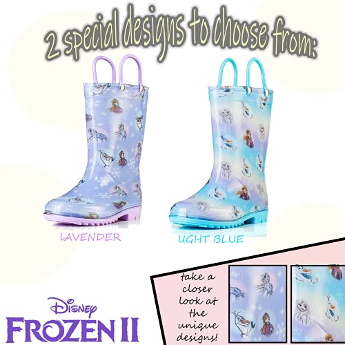 Disney Frozen 2 Girls' Anna, Elsa & Olaf Waterproof PVC Rain Boots with functional-On Handles – Pink & Purple – Toddler & Little Kid Sizes