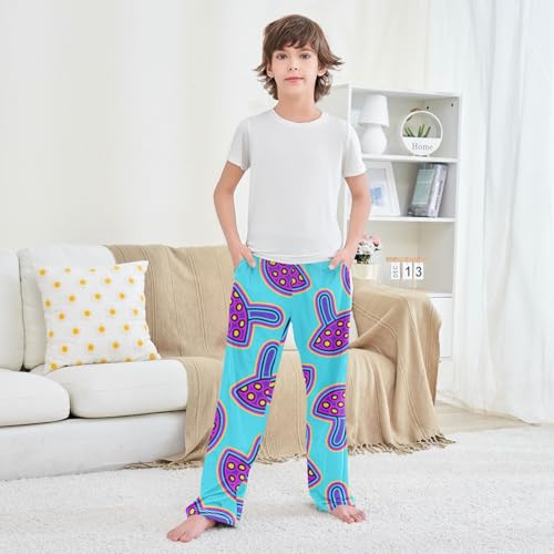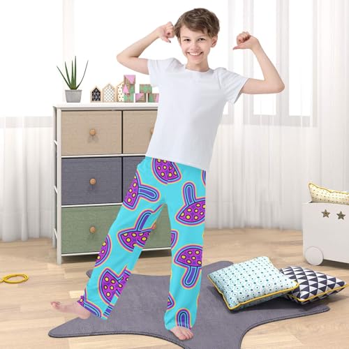 Purple Mushroom Boys Pants Boys Athletic Pants Long Pant for Boywith Pockets Wide-Leg Size 6-14Y