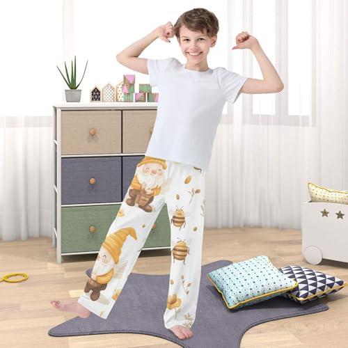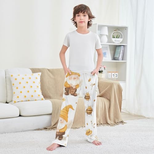 Bee and Gnome Boys Long Pants gentle Trousers Elastic Waist Kids Lounge Bottoms with Pockets S-XL