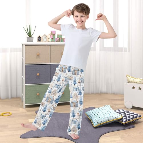 Christmas Xmas Snowman Long Pajama Pants Elastic Waist PJ Bottoms with Pockets S A110497