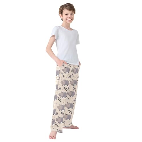 ALAZA Hippopotamus Pajamas Bottoms with Pockets Comfy Pjs Sleepwear Elastic Waistband Pajamas Pants Lounge Pants for 6-14 Years