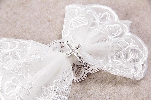 Why Choose 2 Pack Baptism White Newborn Bowknot Headbands Baby Christening Hair Bows Headwrap Toddler Hairband (Cross Button)?