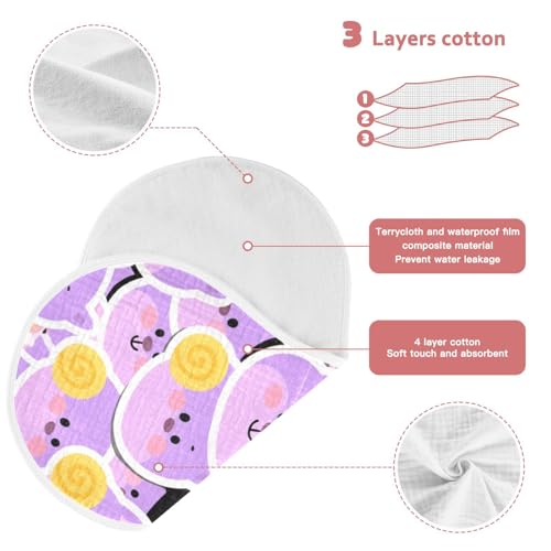 Cartoon Cute Purple Animal Cotton Burp Cloths Baby Breathable Baby spit up Cloth for Babies boy and Girl Set of 2, 22x11in