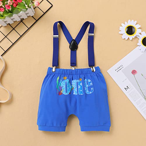 Fabric type: CottonCare instructions: Machine or hand-wash. Tumble dry low. No bleach.Origin: ImportedBABY BOY FIRST BIRTHDAY OUTFIT: Newborn infant baby boys first birthday cake smash outfit short sleeve romper and shorts pants with y-back suspenders 3pcs clothes set. Suit for one year old babies. A perfect way to show your little one's first year photos in a fun way at his ocean animal basketball golf excavator themed first birthday party. He would enjoy all the fun and get it messy with cake on his first birthday party, create unforgettable memories with pictures of your little guy.BOW TIE COTTON SHORT SLEEVE ROMPER: Baby boys first birthday suit. Basketball theme birthday party supplies. Ocean theme birthday party clothes. The cotton short sleeve romper features round neck, a bowtie decor at neckline. Printed with letters 1 , 1st Birthday, My 1st birthday as well as cars and banner pattern, which is very suitable for his birthday. Lapped shoulder design offers enough space for babies movement, and with 3 snap buttons on the crotch for easily diapers changingMATCHING SHORTS AND SUSPENDERS: Matching solid color shorts with elastic waistband for comfy fitting. Plus with suspenders, Y Back, adjustable design with 3 firm clips and 2 length adjusters, easy to open clip, enough strength to hold pants up tightly. Cake smash outfit boy first birthday party photography prop casual daily wear baby boy smash cake outfit, baby boy excavator party cotume dress up.SUITABLE OCCASION: Baby gentleman romper, adjustable suspender and shorts set is an excellent gift idea for any occasion. Perfect for baby 1st birthday, first one year party, cake smash, photo shooting, photography, photo session, first birthday pictures, holiday, ceremony, baptism, Christmas, Halloween, Easter, Thanksgiving, pageant, daily wear, casual, dress up party also a great idea for a baby shower gift. It would be the biggest birthday suprise for your son, nephew, grandsonPERFECT FIRST BIRTHDAY GIFT EVER: Ocean sea animal birthday outfit for 1 year old baby boy cake smash outfit first birthday, 1st birthday boy gifts, ocean theme 1st birthday smash cake outfit, construction birthday party supplies, cake smash outfit boy first birthday, baby boys first birthday costume, included: 1 x bow tie romper, 1 x shorts, 1 x adjustable suspenders. Such cute and practical clothing set to record happy and memorable birthday of your baby. Perfect for everyday use. excellent materials and excellent craftsmanship ensure long-lasting durability.