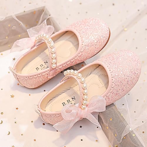 Girls Dress Shoes Kid Toddler Bow Pearls Strap Mary Jane Shoes Flower Girl Wedding Party Glitter Princess Ballet Flat