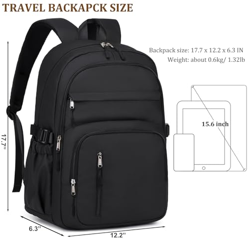 High-quality Materials: The material is specially treated to block rain, ideal for wet weather. High-density fibers resist wear and tear for long-lasting use. Allows airflow, perfect for outdoor activities. Smooth texture with a sophisticated look. The premium quality SBS zippers to ensure the long-lasting durability.Large Capacity: Spacious backpack with plenty of pockets and appreciate its versatility for daily use, travel, school, or hiking. Multiple pockets keep things organized. Fall in Love with the travel backpack's style and functionality.Backpack Size: 17.7 x12.2 x 6.3 in; Total of 4 compartments and 12 pockets for your computer, A4 folder, water bottles, umbrellas, clothes, work supplies, college supplies or travel essentials.Comfort & Convenience: The Widen and thicken durable S-shape straps with good breathability and good heat dissipation are well-padded, adjustable and comfortable to carry. The luggage strap allows this backpack to attach to luggage/suitcases, make your travelling more convenient.All-Occasion Backpack: The stylish and practical bag is ideal for college students, teens and adults. Choose from various colors to match your style, making it perfect for school, travel, work, and everyday adventures. Perfect for everyday use. High quality materials and excellent craftsmanship ensure long-lasting durability.