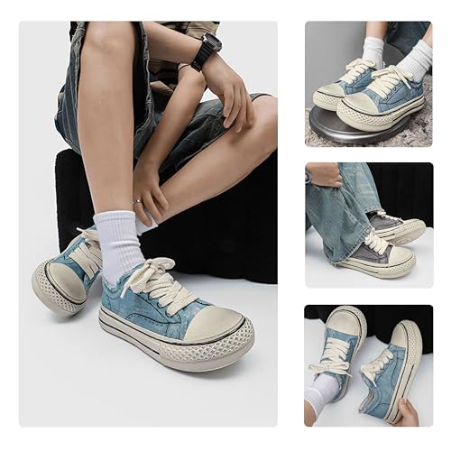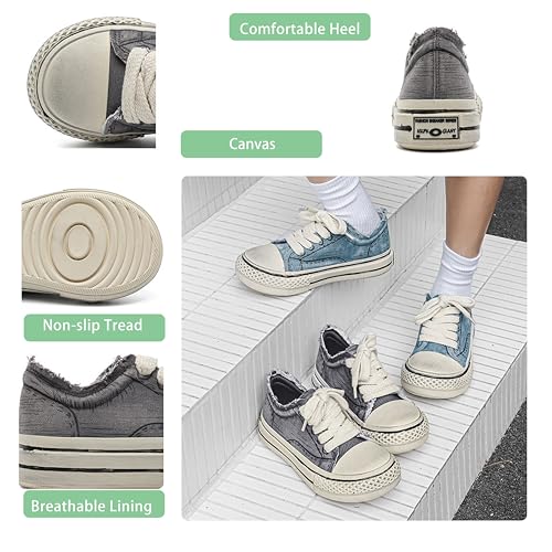 Sole material: RubberOuter material: CanvasClosure type: Lace-UpWater resistance level: Not Water Resistant❤ Retro Chunky Style:These sneakers have a retro vibe. The faded denim - look and frayed edges bring 90s cool, perfect for adding a vintage touch to casual outfits like jeans or sundresses.❤ Soft & Breathable Design:Made with soft, breathable canvas. Air flows in easily, keeping feet comfy all day—great for long walks, shopping trips, or weekend hangouts without sweat.❤ Comfy Frayed - Edge:Features comfy frayed edges. The gentle, worn - in feel hugs feet softly, no blisters even after hours of wear—ideal for daily on - the - go styles.❤ Easy Outfit Matching:Super easy to match outfits. Pair with high - waisted jeans for a streetwear look, or flowy skirts for a laid - back vibe—versatile for any casual occasion.❤ Trendy Daily Wear:Perfect for trendy daily wear. The chunky, casual design fits fashion - forward tastes, blending cool style and value—ideal for coffee runs, errands, or casual hangouts to stay sophisticated effortlessly. Perfect for everyday use. excellent materials and excellent craftsmanship ensure long-lasting durability.