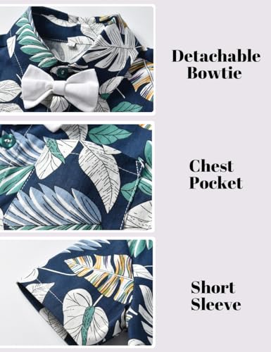 JunNeng Toddler Baby Boy Shorts Sets Hawaiian Outfits,Tropical Floral Short Sleeve Shirt +Elastic Shorts Vacation Clothes