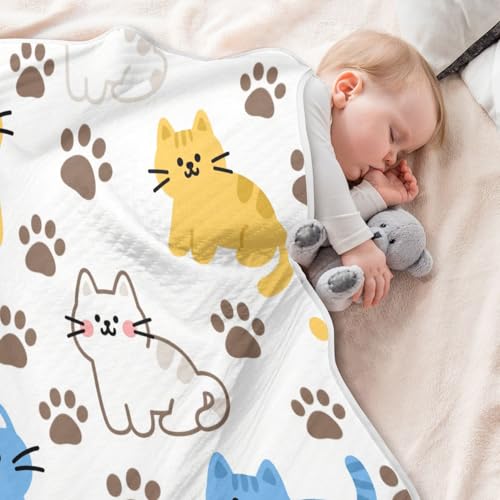 Custom Cute Cat Yellow Blue Throw Blankets Breathable Customizable Dog Blankets for Girls or Boys 30x40in Regalos para Baby Shower de ni?a