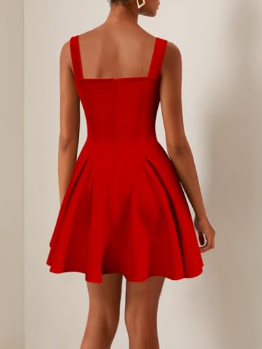 sizzling ! Women's Fit and Flare Mini Dress - Tank Sleeveless Square Neck Sexy Ruffle A Line Club Party Going Out Dresses