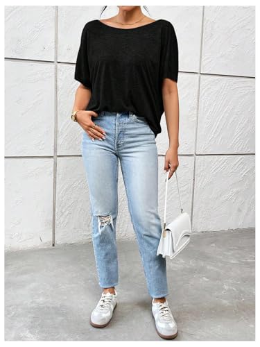 More information about Women's Backless Twist Knot T Shirt Oversized Solid Short Sleeve Tees Open Back Asymmetrical Hem Casual Tops