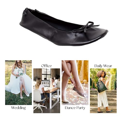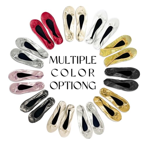 Women's Foldable Flats, Portable Ballet Flat Roll Up Slipper Shoes with Travel Pouch Bag for Ballerina Wedding