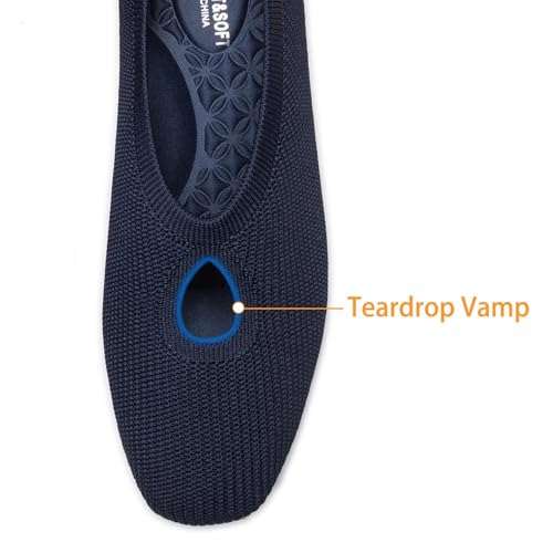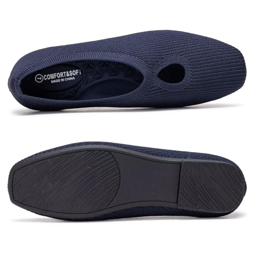 Frank Mully Women's Knit Flats Teardrop Upper Square-Toe Style Shoes Lightweight Flats for Women pleasant Slip on Flats for Work Wedding Office