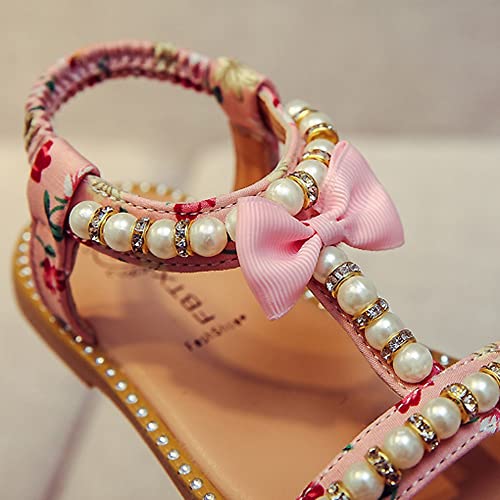 White Sandals for Girls Kids Baby Girls Sandals Bowknot Pearl Crystal Roman Sandals Princess Shoes (Pink, 29)