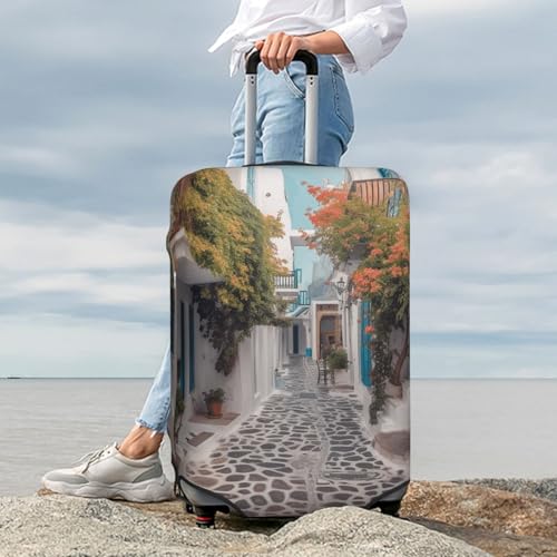 Travel Luggage Cover Fashion Suitcase Protector Greece Street Spandex Baggage Covers Washable Suitcase Covers Anti-Scratch Luggage Cover Protectors Fits 18-32 Inch Suitcases X-Large