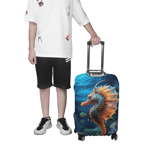 sizzling ! Ocean Seahorse Elastic Luggage Cover Suitcase Protector for 19-32 Inch Suitcases | Universal Stretchable Travel Bag Cover | Anti-Scratch, Washable with Zipper Closure L