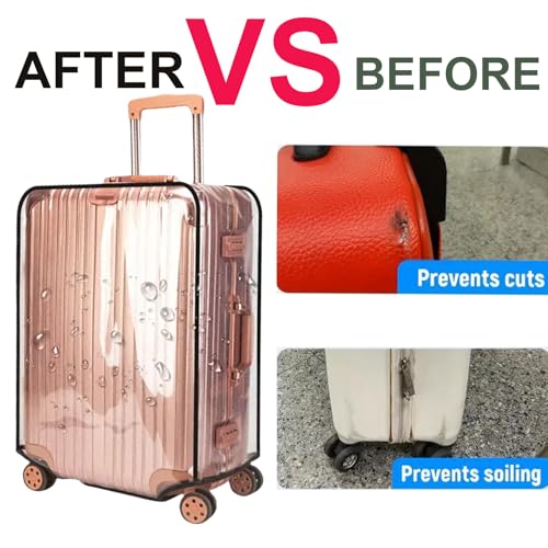 Dimensions: This 28-inch protective suitcase cover measures 25.2 H x 19.7 L x 11.4 W (excluding wheels). Please note: Sizing can vary between luggage brands, so we recommend measuring your suitcase before purchase for an optimal fit.Keep Your Luggage Looking Like New: This protective cover safeguards your bag from scratches, scuffs, impacts, and rainy weather throughout your journey. It's your best defense against rough handling at baggage claim and the elements, ensuring your suitcase arrives clean and looking its best.Right-Side Handle Access: Features a convenient opening on the right side (when facing the suitcase) for quick and easy use of the side handle.Clear PVC Material: Crafted from tough, flexible PVC that's both wear-resistant and easily foldable for storage, this transparent cover provides reliable protection while making your luggage instantly recognizable at a glance.Secure-Fit Design: Features top-access openings for telescopic and carry handles, combined with a full-coverage hook-and-loop base closure that securely expands up to 6 inches to fit most suitcase sizes, firmly preventing slippage and wheel snagging. Perfect for everyday use. premium materials and excellent craftsmanship ensure long-lasting durability.