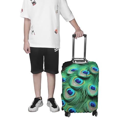 Green Peacock Feather Luggage Cover Personalization Suitcase Covers Protector Elastic Washable Baggage Cover Anti-Scratch For Traveling, Aircraft Consignment S