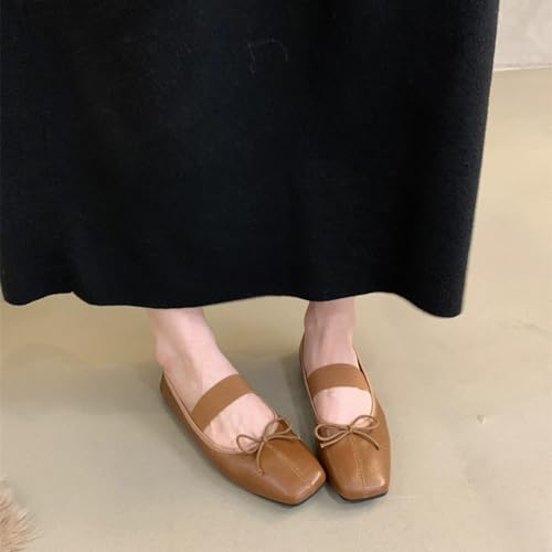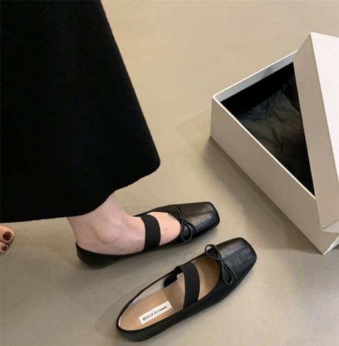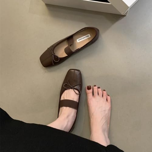 Women's Mary Jane Ballet Flat Shoes Comfort Square Toe gentle Sole Antiskid Elastic Ankle Strap Casual Dress Shoes Vintage Bow Tie Mary Janes