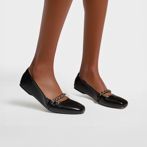More information about Mary Jane Flats;Square Toe Metal Chain Flats;Tweed Fabric Delicate and Elegant Women Shoes