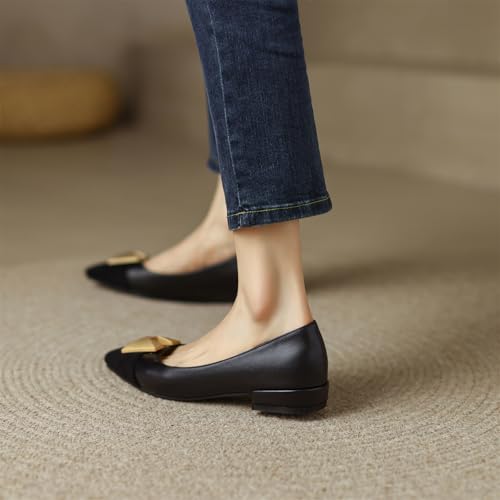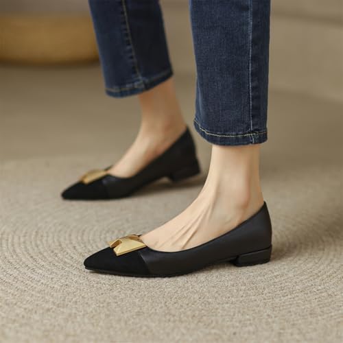Women's Retro Cap Pointed Closed Toe Pump Slip-On Chunky Low Two Toned Block Heel Metallic iconic Work Office Church Casual Comfort Dress Shoes Business Party Daily Wear Flats
