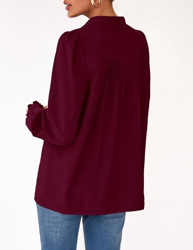 PRETTYGARDEN Fall Lantern Long Sleeve Shirts for Women 2025 Trendy Button Vneck Pullover Henley Tops Dressy Work Blouses