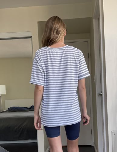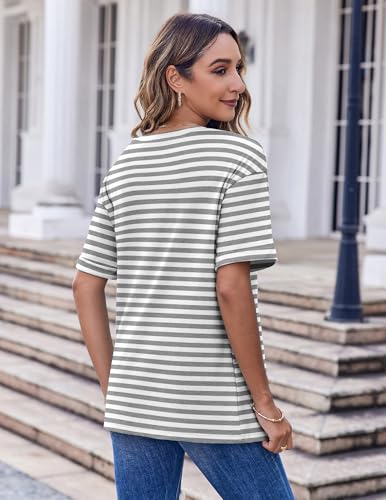 • Womens Fashion Matches: The women's short sleeve striped tee shirt is effortless to pair with yoga pants, casual pants, jeans, shorts, leggings, pants or skirt for a concise look. Womens tops casual will be superb for summer shirts, or as a layering piece under a blazer or jacket in winter. A must-have womens tops in your wardrobe
