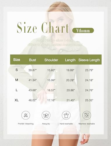 Ythomm Womens Ruffle Collar Cropped Cardigans Button Down Open Front Long Sleeve Knit Sweater Jackets Casual Solid Fall Tops