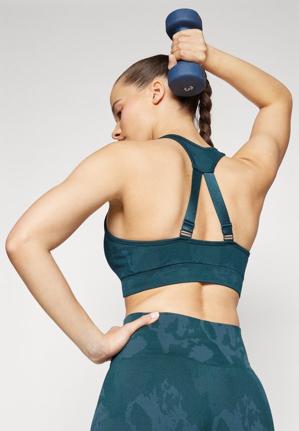 This SEAMLESS BRA - Medium support sports bra - dark teal combines elegant design with practical functionality. Every detail has been carefully considered to ensure you get the best possible experience. The magnificent construction means this product will serve you well for years to come.