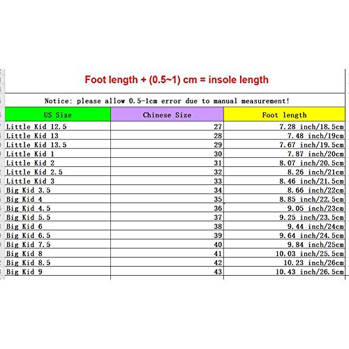 - Please Check the size details on descriptions to choose your kids size,the child's feet grow prompt,we suggest you choose one size larger.Thanks!