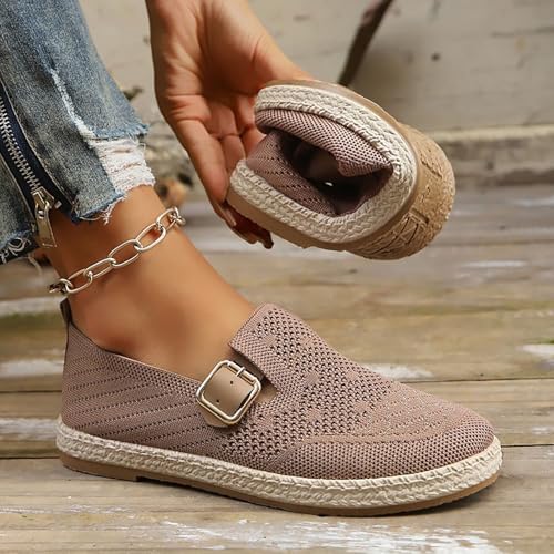 Mary Jane Flats Women with Adjustable Strap Round Toe Casual Walking Slip On Shoes Ballet Flats Dressy pleasant Business Office Work Breathable Mesh Non-Slip Buckle Shoes for Women