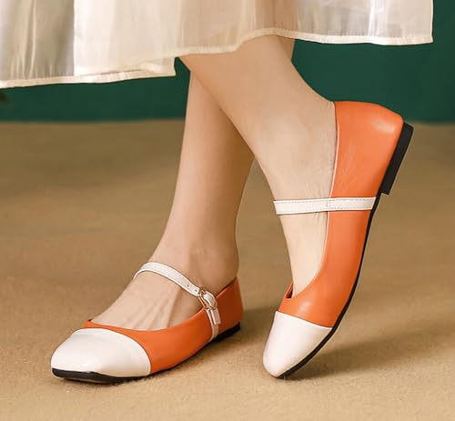 Niction Women's Ballet Flat Shoes Two Tone Slip On with Adjustable Strap Flats Comfort Square Toe Dressy Flat Shoes for Casual Work Wedding