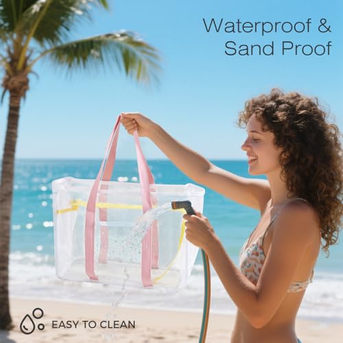 Clear Beach Bag for Women,Waterproof,Sandproof,Large Transparent PVC Tote Bag for Stadium Events Beach Travel Gym Pool