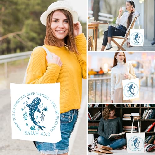 Floral Beach Whale Shark Gifts Jellyfish Christian Canvas Tote Bag for Work Totes for Women Christmas Bible