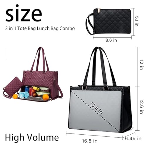 Tote and Luxe Co Bag, Toteluxeco 3 in 1 Quilted Tote Bag, with Laptop Pocket, Insulated Lunch Section and Removable Purse