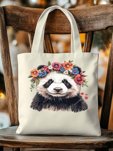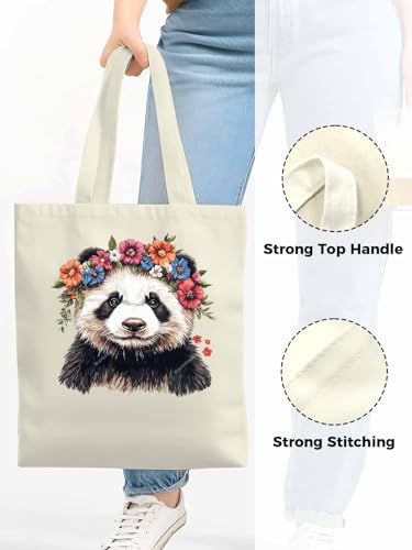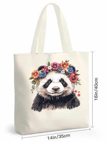 More information about Canvas Tote Bags,Grocery Shopping Cloth Bag Cute Panda Floral Reusable Shoulder Bags Tote Bag for Travel Work Gym