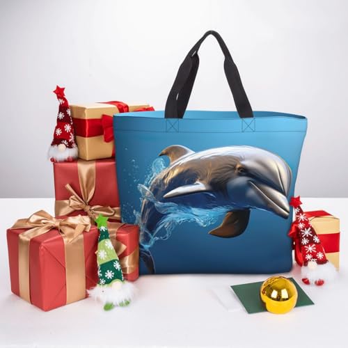 one-of-a-kind 3D Animal dolphin print Tote Bag for Women Reusable Shopping Bag Large Beach Bag Travel Vacation Work