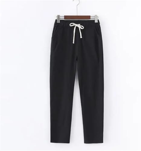 sizzling ! Women Summer Linen Cotton Casual Solid Color Elastic Waist Trousers Harajuku Ankle-Length Pants