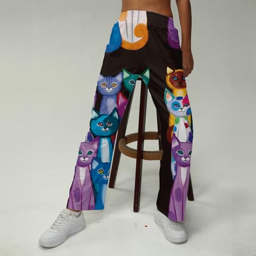 More information about Women Pants Cartoon Animal Print Wide Leg High Waist Elastic Waistband Casual Trousers Relaxed Fit Streetwear Daily Outfits
