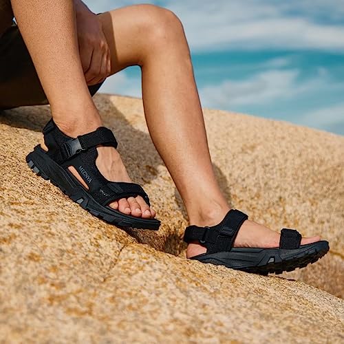 sizzling ! MEGNYA Mens plush Walking Sandals, supple Sports Hiking Sandals with Three Adjustable Hook And Loop Straps, Casual Beach Athletic Sandals for Outdoor Active Camping