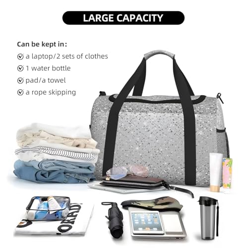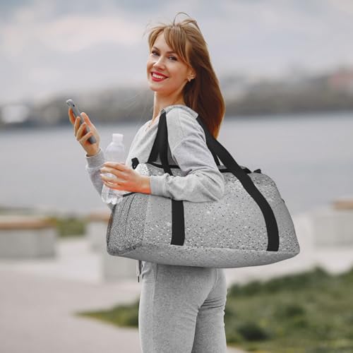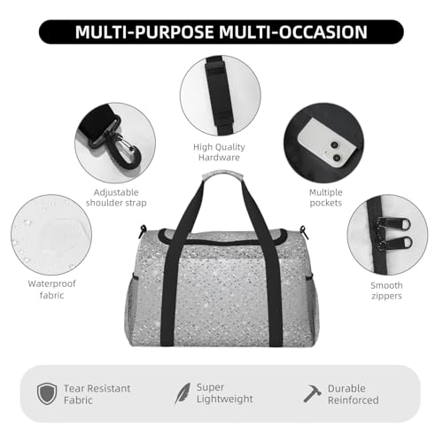 Silver Glitter Design Large Travel Duffle Bag – robust Polyester Weekender with Hand Carry & Shoulder Strap for Sports & Outdoor