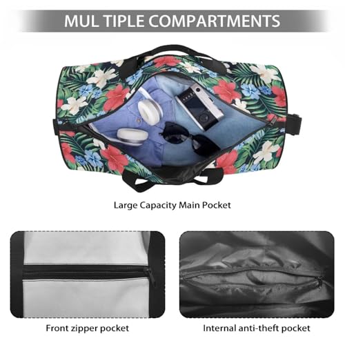 sizzling ! Hibiscus Flower Duffle Bag for Travel Tropical Travel Duffel Bags for Women Portable Carry On Personal Item Bag for Flying Weekender Bags with Adjustable Strap